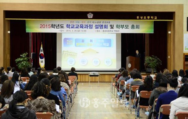 ▲ 홍성초등학교(교장 전병세)는 지난 20일 백월관에서 ‘2015 다(多)울림 홍성교육과정 설명회’를 갖고 역점사업 설명과 효과적인 자녀 지도법에 대해 연수를 실시했다. 저작권자 © 홍주일보 무단전재 및 재배포 금지 홍주일보 다른기사 보기 페이스북 카카오톡 URL복사 기사공유하기