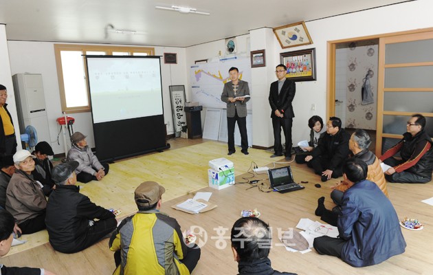 군은 지난달 26일 광천읍 신진리 장현마을회관에서 덕명초등학교~신촌삼거리 간 도시계획도로 개설사업 실시설계용역에 따른 지역주민 설명회를 가졌다.<사진>