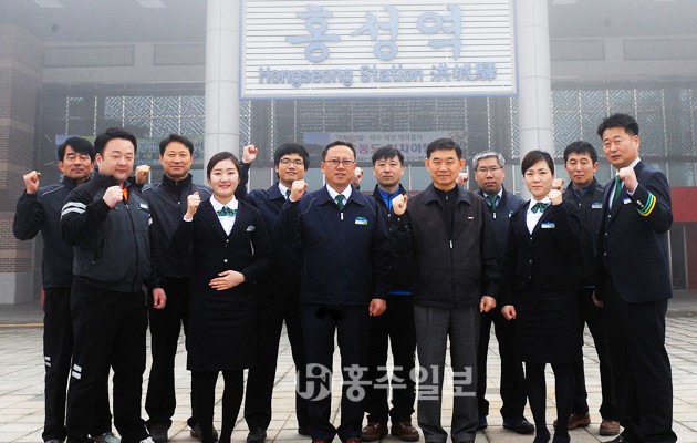 작지만 강한 홍성역은 지난해 대전충남본부관할 역 가운데 3년 째 부동의 1위이라는 실적을 올렸다. 뿐만 아니라 지난해는 전국 79개역 가운데 전년대비 수익률이 가장 높은 역으로도 선정되며 화제를 모았다. 대외적인 업무를 맡고 있는 지희양 부역장은 “우리 역이 여객뿐만 아니라 철강과 시멘트 등 지역 기업과 손잡고 다양한 수송 업무에 노력한 결과”라며 “앞으로도 고객 만족을 최우선으로 해 안전은 물론 수익 창출에 힘을 쏟겠다”고 밝혔다. 올해를 끝으로 철로를 떠난다는 주호용 역장은 “지난 40여 년 간 무사히 일을 해올 수 있었던 것은 보이지 않는 곳에서 자기 역할을 다 하고 있는 동료직원들이 있었기 때문”이라며 “남은 기간 앞으로도 홍성역이 군민들에게 소중한 추억을 만들어주는데 기여하도록 열과 성을 다하겠다”고 밝혔다.