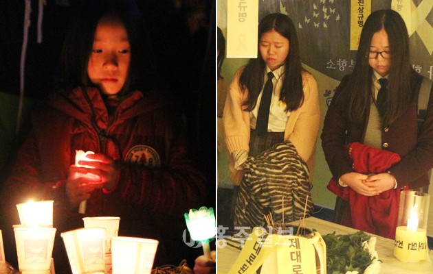이날 세월호추모문화제에는 자녀의 손을 잡은 부모들과 교복을 입은 학생들을 비롯해 시민사회단체 회원 등 300여 명이 참가했다. 참가자들은 세월호 참사 희생자들을 추모하기 위한 촛불을 켰다. 참가자들은 자유발언과 연주, 합창, 시낭송, 편지낭송 등을 통해 참사로 인한 희생자들을 추모하고, 철저한 진상규명을 촉구했다. 지역의 중고등학생과 세월호 참사 관련 영상을 제작해 이날 상영한 미디그램 정혜윤 강사는 “아이들을 안전하게 지키기 어려운 세상이 됐다”고 말했다. 이어 “세상은 가만히 있으라 하지만 가만히 있지 않는 어른들의 용기가 필요한 시점”이라며 “할 수 있는 일을 고민하고 행동으로 옮길 수 있게 노력하겠다”고 다짐했다.