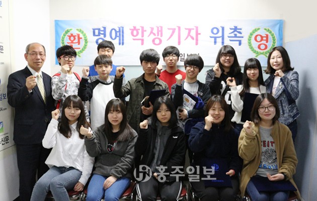 ㈜홍주일보사(대표 한관우)는 지난 18일 회의실에서 홍성고등학교, 홍성여자고등학교, 갈산중학교, 갈산고등학교 학생기자 등 20여 명이 참석한 가운데 2015 명예 학생기자 위촉식을 가졌다.