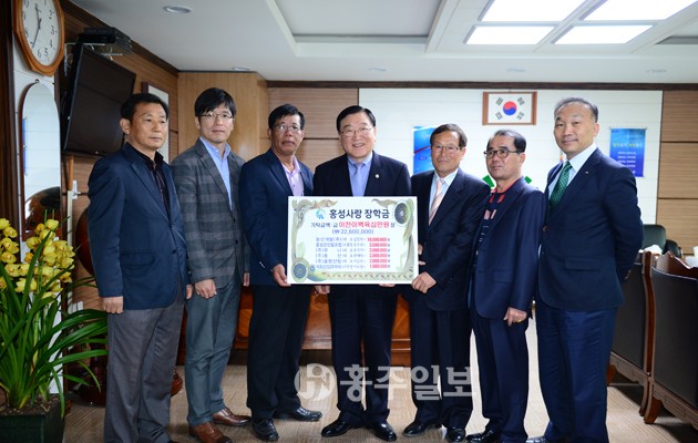 군이 2018년까지 지역인재 발굴 육성을 위해 추진하고 있는 홍성사랑장학금 100억 조성 범군민 모금운동에 군내에 활동하고 있는 산림관련 6개 법인·단체가 팔을 걷고 나섰다. 6개 산림관련 법인·단체는 △농산개발㈜(대표 김정욱) △홍성군산림조합(조합장 윤주선) △임업후계자회홍성군지부(지부장 이포영) △㈜유니(대표 윤석구) △㈜호산(대표 한재덕) △㈜솔향산림(대표 이승우) 등으로 2260만원을 홍성사랑장학회에 장학금으로 전달했다.