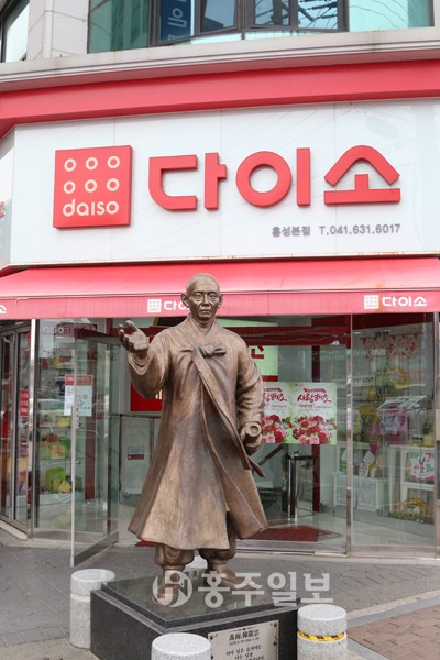 4년의 세월이 흐르며 상점의 이름과 주인은 바뀌었지만 만해 선사의 모습은 그대로다. 현재 그의 동상은 일본 생활용품 브랜드인 ‘다이소’ 매장 앞을 지키고 있다. ‘다이소’는 일본말로 큰 물건을 만들자는 뜻이란다. 얼마 전 본사로 한통의 전화가 걸려왔다. 홍성의 역사문화 유적지를 탐방하기 위해 서울서 일행들과 함께 홍성에 왔다는 모 인사의 전화였다. 그는 다짜고짜 호통부터 쳤다. “당신네 기자들 뭐하는 사람들이야. 만해 선사의 동상을 저렇게 방치할 수 있느냐”며 한참을 나무랐다.