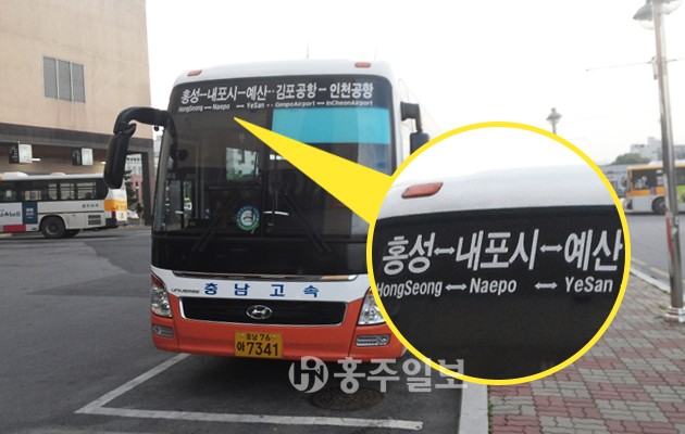 충남도, 해당업체에 행선지 표기 수정토록 조치