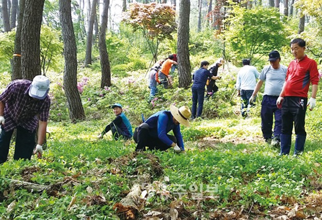 결성면 좌우촌마을(이장 장선호) 주민 및 면사무소직원 등 40여명은 지난 7일 석당산 산책로 제초작업 및 주변 정비작업을 실시했다. 석당산은 높이가 109m로 산세가 완만하고 험하지 않아 산책로로 이용되고 있다.