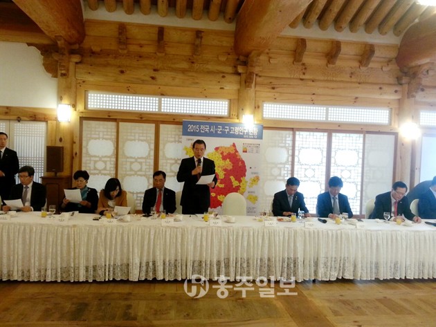 새누리당 홍문표의원(홍성군, 예산군)은 지난 15일 국회 사랑재에서 열린 전국 노인 대표자 오찬간담회(정의화 국회의장 주최)에 참석, 현재 우리나라의 노인문제와 이를 해결하기 위한 제도적 보완 방안에 대하여 폭넓은 의견을 나눴다. 현재 우리나라의 고령화 속도는 세계 1위로 고령화에 따른 노인 관련 여러 심각한 문제를 가지고 있지만, 현재 15개 정부부처에서 추진 중인 노인정책 다수 사업이 중복되고 체계적이지 않게 운영되고 있는 실정이다. 홍 의원은 이번 간담회에서 노인복지 정책의 효율성을 높이기 위한‘노인복지청신설 법안(정부조직법 개정안)’에 대한 당위성 설명과 법안이 조속히 통과 되어야 한다는 점을 강조했다.