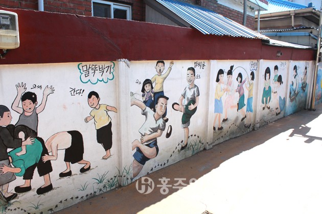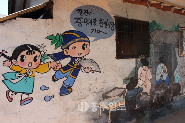 천안시 중앙동 17~18통 일대는 2년 전만 해도 좁고 지저분한 골목이 얽히고설킨 낙후된 지역이었다. 낡고 허름한 골목길에 변화의 바람이 분 것은 지난 2012년 도심재생사업이 시작되면서 통장협의회, 노인회 등 지역 주민단체와 공무원, 전문 업체, 아르바이트를 자청한 벽화 동아리 미술학도들이 힘을 합쳤다. 쓰러져가던 담벼락을 복구하고 바닥은 옛날 골목길처럼 황톳길로 단장했다. 담장에는 예쁜 벽화를 그려 넣어 확 달라진 모습으로 탈바꿈시켰다. 벽화가 그려진 담장 길이는 무려 800여m에 이른다. 전문가의 손을 빌린 트릭아트 8점을 비롯해 다양한 테마의 벽화가 오밀조밀 미로를 이루어 옛 사람들의 삶이 묻어나는 현장에서 당시의 생활상을 되돌아 보며, 사진을 찍으며 천천히 돌아보기에 좋은 길이다.