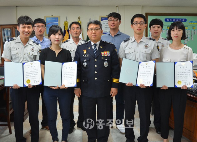 홍성경찰서(서장 홍명곤)는 지난 24일 경찰서장실에서 4대악 업무유공 경찰관 8명에 대한 표창을 수여했다. 저작권자 © 홍주일보 무단전재 및 재배포 금지 홍주일보 다른기사 보기 페이스북 카카오톡 URL복사 기사공유하기