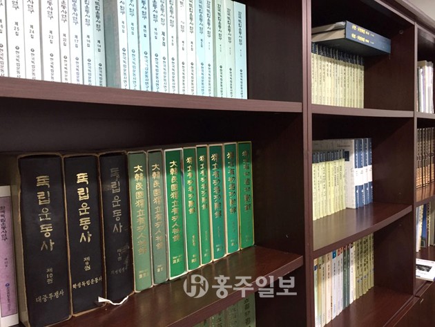 그가 초등학교 3학년이 되던 해, 나라는 드디어 광복을 맞게 됐다. 그러나 아버지는 광복의 기쁨을 맛보지 못했다. “아버지께서는 광복되기 5년 전쯤 돌아가셨습니다. 수감돼 있는 동안 모진 고문을 당한 후유증으로 일찍 돌아가셨죠.” 아버지에 대한 기억을 찾아 그는 독립운동에 대한 기록을 찾기 시작했다. 아버지에 대한 기록을 시작으로 그는 내포지역의 독립운동사까지도 범위를 넓혀나갔다. “시작은 아버지에 대한 기록을 찾는 거였는데, 그 기록을 찾다보니 자연스레 내포지역의 독립운동사까지도 연구하게 됐습니다. 청양, 대천, 은하, 홍성까지 독립운동의 흐름이 이어지니까요.” 그 과정에서 독립운동에 관한 책도 수집하게 됐다. “책을 찾으려 전국의 헌책방을 돌아다녔습니다. 이미 절판된 책은 그런 곳이 아니면 구할 수가 없거든요. 이제는 제가 나이 들어 책을 보기에도 무리가 있습니다. 책이라는 게 그냥 두면 종이 조각밖에 안 됩니다. 귀한 책들이니만큼 독립운동사연구에 잘 쓰여졌으면 합니다.” 인터뷰 당일에도 66권의 책이 광천으로 보내졌다. 그는 앞으로도 책을 구해 지속적으로 내려 보낼 생각이라고 한다. “제가 죽고 난 후, 고향에서 독립운동사 연구하는 사람들이 ‘이 책 누가 기증한 건데, 희귀한 자료를 얻었다. 이 책 덕에 연구하는 데 잘 썼다’고 하면, 그거면 족합니다.”