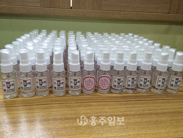 홍성군장애인종합복지관은 지난달 26일 호서대학교 CK바이오사업단으로부터 손 소독제 100병을 무상으로 지원받았다. 장애인 복지관에 따르면 이번에 제공받은 휴대용 손 소독제는 호서대학교 ‘CK바이오사업단’의 지원을 받아 호서대 제약공학과 학생들이 제작한 것으로, 메르스로 인한 손 소독제 품귀현상으로 유통기간이 지난 상품을 사용하는 것을 방지하고자 제작해 무상으로 지원된 것이다.