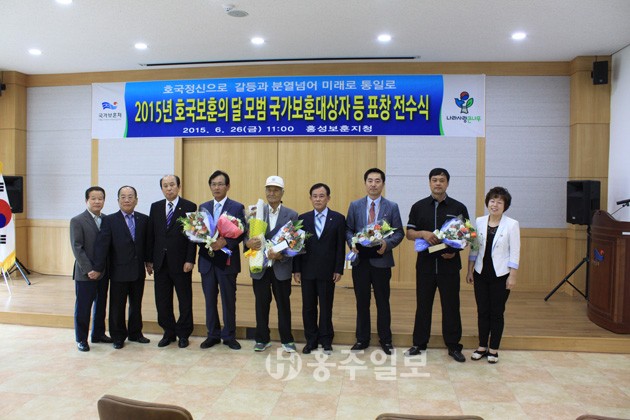 홍성보훈지청(지청장 정현종)은 지난달 26일 지청 청사 대강당에서 모범 국가보훈대상자 등을 대상으로 표창 전수식을 거행했다. 표창 대상자는 국방부장관 표창 2명, 국가보훈처장 표창 5명 등 총 7명이다. 정현종 지청장은 전수식에서 “우리 모두는 하나 된 마음으로 안보를 튼튼하게 지키면서 평화통일을 이루기 위해 힘과 지혜를 모아야 한다”고 당부했다. 한편 이날 전수식은 메르스 확산 방지 차원에서 행사 규모를 최소화해서 치러졌다.