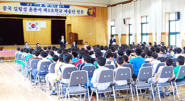 한낮의 햇볕이 제법 따가운 5월 29일 홍남초등학교(교장 권용춘)에 반가운 손님이 왔다. 일제강점기 시절 청산리 봉오동 전투 등 일본군을 물리쳐 우리 민족의 자긍심과 독립의 뜨거운 의지를 보여 주었던 수많은 애국지사들의 후손인 중국 길림성 훈춘시 제4소학교 어린이들과 홍남초 어린이들이 협약식을 갖고 서로의 관심과 우정을 함께 하기로 했다.