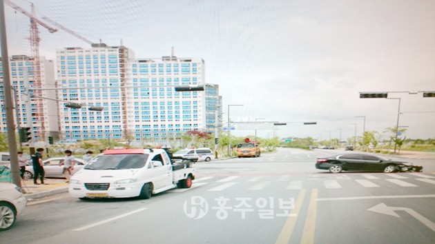 이 교차로에서 사고가 빈발하는 이유는 도로변에 세워진 불법 주차차량들과 가로수 등이 이곳을 통행하는 차량 운전자들의 시야를 가리는데서 비롯된 것으로 지적된다. 게다가 아직 개발 중인 지역이어서 차량 통행량이 많지 않아 과속운전으로 인한 대형사고 위험도 안고 있다. 지난 5월 이 교차로에서 교통사고를 당한 임 모씨는 “도로변에 공사현장 관계자들의 차량을 비롯, 불법 주차차량이 많은데다 중앙분리대 가로수 등이 시야가 가려 위험하다”며 “과속차량도 많아 사고 위험을 더욱 부추기는 것 같다”고 말했다.