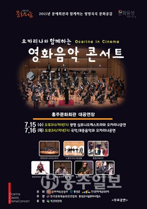 홍주문화회관에서는 오는 15일부터 16일까지 ‘2015 방방곡곡문화공감 문예회관 기획공연프로그램’으로 ‘오카리나와 함께하는 영화음악콘서트’를 개최한다. 이번 공연은 문화체육관광부가 주최하고 한국문화예술회관연합회가 주관하며, 지역민들에게 생활문화예술 향유 기회를 제공함으로써 문화 복지를 실현하기 위해 기획됐다. 또한 공모사업에 선정돼 공연제작비의 일부를 복권기금으로 지원받아 개최된다. 특히 이번 콘서트는 무대에 대형 LED화면을 설치해 영화 음악을 연주자들의 라이브 음악으로 듣는 것뿐만 아니라 영화 영상까지 함께 감상할 수 있는 남녀노소 모두가 즐길 수 있는 색다른 공연으로 진행된다. 오는 15일 오후 3시와 7시에는 광명심포니오케스트라와 충청오페라단(소프라노 구은경, 테너 김정규, 바리톤 김태형, 피아노 강수영 등), 노블오카리나앙상블이 출연해 ‘캐러비안의 해적’, ‘파리넬리’, ‘겨울왕국’ 등을 선보인다. 또 오는 16일 오후 3시와 7시에는 단미소리 퓨전국악단, 색소폰연주 이종근, 포크가수 최승락, 팬플룻연주 홍광일, 휘슬연주자 김준우 등이 출연해 노블오카리나앙상블과 함께 ‘미션’, ‘타이타닉’ 등 ‘국악, 대중음악과 오카리나 공연’이라는 주제로 색다른 협연을 펼칠 계획이다. 관람료는 무료로, 티켓은 공연 당일 홍주문화회관 로비에서 배부한다. 자세한 문의는 630-0021로 하면 된다.
