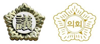 그러나 글씨색은 금색, 바탕색은 백색으로 종전과 같다. 휘장 문양 역시 중앙원형 안의 ‘議’자가 한글 ‘의회’로 바뀐다. 기의 바탕색(청색)과 글씨색(금색), 원형내 색(백색)은 기존과 같으나 실내용과 옥외용을 구분, 실내용은 기존과 같은 가로 135cm, 세로 90cm크기에 자수로 제작하고 모서리에는 금술을 붙이며 옥외용은 가로 210cm, 세로 140cm 크기에 광목 재질에 나염으로 제작한다.