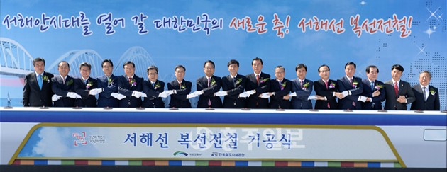 홍성부터 경기도 화성까지를 철도로 연결하는 서해선 복선전철 기공식이 지난 22일 홍성역에서 유일호 국토교통부장관, 홍문표 예산결산특별위원장, 안희정 충남도지사, 강영일 한국철도시설공단 이사장 등 정·관계 인사 및 지역주민 등 1000여 명이 참석한 가운데 개최됐다. 이번 서해선 복선전철 건설로 홍성은 명실상부한 서해안지역 사통팔달 교통의 중심지로 도약하게 됐다. 서해선 복선전철사업은 총 사업비 3조 8280억원을 투입해 홍성에서 경기도 화성 송산까지 총 90KM를 철도로 연결하는 사업으로, 지난 2007년 8월 예비타당성 조사를 거친 후 2012년 12월 실시설계를 완료하고 지난해 10월 총 사업비 승인을 받은 사업이다. 또 올해는 400억 원의 예산이 책정돼 토지보상 및 일부 구간을 착공하는 등 오는 2020년 준공을 목표로 사업이 진행될 예정이다.