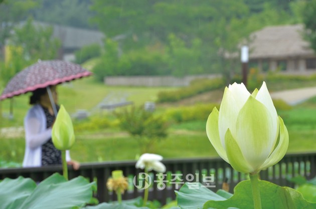 고암 이응노 생가 기념관 앞 연지공원에 연꽃이 아름다운 자태를 뽐내자 관광객들의 발길이 이어지고 있다. 비가 내린 지난 19일에도 관광객들이 우산을 쓴 채 연못 주위를 거닐며 연꽃을 감상했다. 현재 고암 생가 기념관에서는 배종헌 작가의 작품전이 열리고 있다. 저작권자 © 홍주일보 무단전재 및 재배포 금지 김영윤·한 빈 인턴기자 다른기사 보기 페이스북 카카오톡 URL복사 기사공유하기