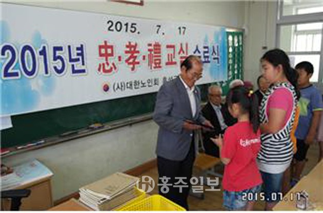 대한노인회 홍성군지회(지회장 이범화)는 지난 17일 홍남초등학교에서 하계 충효예 교실 수료식을 가졌다. 저작권자 © 홍주일보 무단전재 및 재배포 금지 홍주일보 다른기사 보기 페이스북 카카오톡 URL복사 기사공유하기