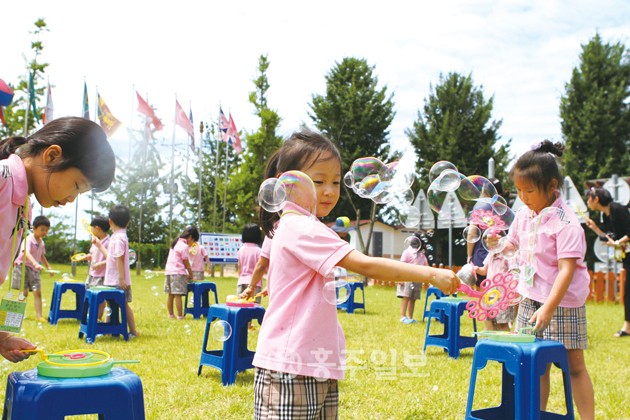 충청남도유아교육진흥원(원장 장진옥)은 꿈터를 찾는 유아단체회원을 대상으로 물총놀이와 비눗방울 놀이를 실시해 유아들의 에너지 발산 기회를 제공하고 있다. 저작권자 © 홍주일보 무단전재 및 재배포 금지 홍주일보 다른기사 보기 페이스북 카카오톡 URL복사 기사공유하기