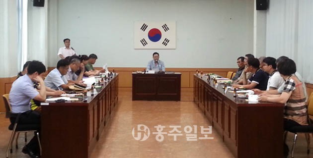 홍성읍은 지난 3일 제70주년 광복절을 기념해 태극기 물결을 아파트 단지까지 확산시키고자 읍내 18개 아파트의 관리소장과 해당 마을 이장을 초청해 읍사무소 회의실에서 간담회를 가졌다. 이번 회의는 아파트 단지 태극기 게양률 제고를 위한 방법 논의, 태극기 달기 운동 추진에 따른 애로사항 청취, 정보 공유 및 협조사항 전달 등으로 진행됐다. 이날 참석한 아파트관리소장과 이장은 “8. 15 광복을 기념하고자 군에서 대대적으로 추진하는 운동인 만큼 우리도 단결해 태극기 달기 운동이 성공적으로 추진될 수 있도록 적극 동참하겠다”고 말했다. 조승만 홍성읍장은 “나라사랑 실천의 출발점은 태극기 달기”라며 “올해는 광복70주년을 맞는 역사적이고 뜻깊은 해인 만큼 나라의 상징인 태극기가 아파트단지 곳곳에서 휘날려 태극기 물결이 넘쳐날 수 있도록 적극적인 협조 부탁드린다”고 당부했다.