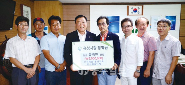한국예총 홍성지회(지회장 최승락)는 지난 5일 군수실에서 지역인재 육성을 위해 홍성사랑장학회(이사장 김석환 군수)에 장학금 600만 원을 기탁했다. 저작권자 © 홍주일보 무단전재 및 재배포 금지 홍주일보 다른기사 보기 페이스북 카카오톡 URL복사 기사공유하기