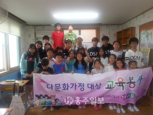 다사모(지도교사 이시연)는 지난 2013년 홍성고 1학년 학생 4명이 결성해 지난해까지 관내 다문화가정 학생들을 대상으로 교육봉사활동을 하다가, 올해는 홍성고 3학년 △이효찬 △김정헌 △박태민 △유재민 △이석현 △이창현 등 6명과 홍성여고 2학년 △김새난슬 △김서연 △김소희 △이소라 △이화연 △장유정 등 6명, 총 12명의 학생들이 연합해 매주 토요일 10시부터 5시까지 봉사활동을 하고 있다. 이들은 관내 다문화가정 학생들의 학습능력 향상과 문화지도, 나아가 다문화가정에 대한 인식개선과 문화 상대주의적 태도를 함양하고, 세계화시대에 걸맞은 글로벌리더로서의 성장을 목표로, △교과지도 및 독서논술지도 △요리 △음악 △미술 △체육 등 다양한 체험활동 보조 봉사활동을 하고 있다.