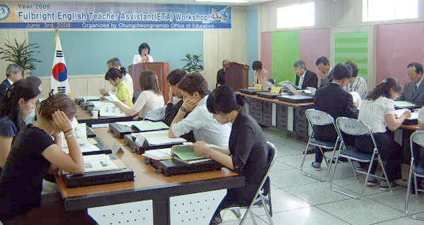 충청남도교육청 주관으로 열린 이번 워크숍은 풀브라이트의 원어민보조교사를 활용하고 있는 충남의 7개학교(천안용소초, 공주교동초, 부여 홍산초, 홍성 홍성초, 홍성 신당초, 홍성 갈산초, 홍성 광성초)의 원어민보조교사 운영 결과를 보고하고 원어민보조교사의 사례를 발표하는 시간으로 이루어졌다.