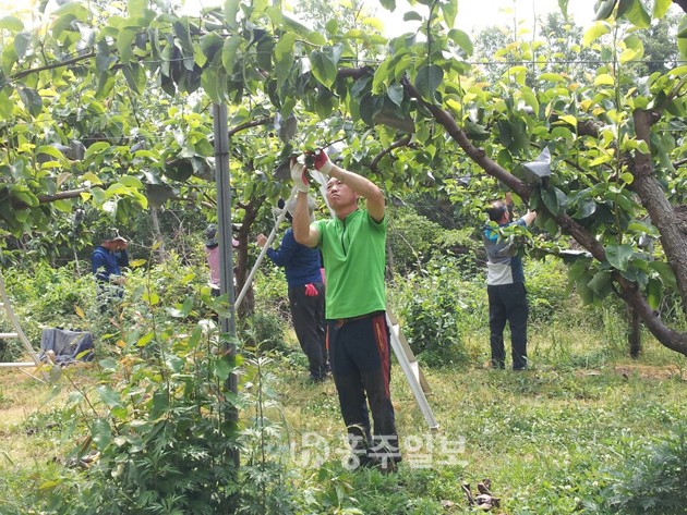 홍성읍사무소(읍장 조승만) 직원과 홍성군청 도시건축과(과장 김윤호) 직원 30여 명은 지난 9일 고암리 과수원을 방문, 배나무 봉지 씌우기를 했다. 저작권자 © 홍주일보 무단전재 및 재배포 금지 홍주일보 다른기사 보기 페이스북 카카오톡 URL복사 기사공유하기