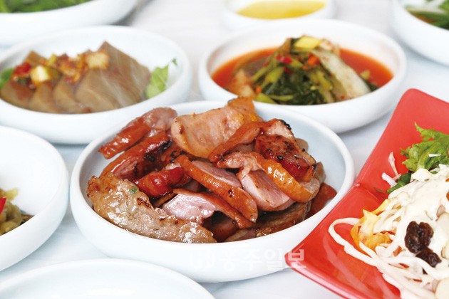 오리전문점으로 오리훈제와 주물럭을 비롯해 오리고기로 만든 떡갈비와 소시지 등 다른 곳에서 맛보기 어려운 다양한 오리 요리를 한 번에 맛 볼 수 있는 스페셜 메뉴가 인기다. 이외에도 양념주물럭과 훈제오리, 오리백숙, 칼국수 등이 준비돼 있다. 스페셜 메뉴는 특히 가족단위 손님들에게 인기가 많은데 색색으로 아름다운 상차림에 눈이 먼저 즐겁다. 시골식당의 투박한 음식을 떠올릴 수 있지만 세련되고 깔끔한 상차림은 흔한 오리고기집의 이미지를 날려준다. 상차림을 보면 치자와 비트 등 천연재료를 이용해 요리에 화려한 색을 더해 눈길을 끄는데 맛도 색다르다. 단순히 눈에 보기에 화려한 것에서 끝나지 않는다. 음식 간 서로 어울리는 재료를 골라 맛만이 아닌 건강도 함께 생각하는 등 작은 반찬에도 고민과 정성이 담겨 있다. 오리는 구워 소스에 찍은 다음 부추 등과 곁들여 먹는데 느끼하지 않고 깔끔하게 먹을 수 있다. 다른 곳에서 보기 힘든 오리떡갈비와 오리 소시지 등은 색다른 맛을 볼 수 있어 남녀노소 좋아한다.