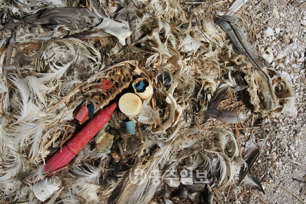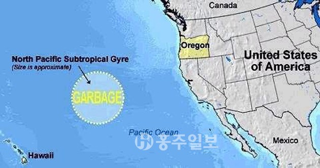 미국 하와이주 북동부 태평양 해상에는 한반도 면적의 7배에 달하는 섬이 하나 있다. 이 섬은 우리가 알고 있는 기존의 섬이 아니라 바로 바다 쓰레기더미라고 한다. 하여 이름도 ‘태평양 거대 쓰레기 더미(Great Pacific Garbage Patch) 또는 플라스틱 소용돌이(Plastic Vortex)’라고 불린다. 2009년부터 해양 과학자 등이 참여하여 이 거대한 바다 쓰레기 구역의 17곳에서 50회에 걸쳐 쓰레기 수거, 분석 작업이 이루어졌다. 그 결과, 쓰레기 안에서 다른 환류 지대들에서 온 쓰레기들을 발견하였는데 그 구역들을 합치면 지구 전체 바다의 40% 즉, 지구 표면의 4분의 1이나 되는 면적이었다고 한다. “지구의 25%는 절대 내려가지 않는 변기가 되는 셈이다.” -찰스 무어, 환경운동가