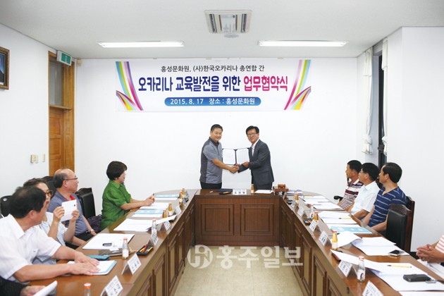 홍성문화원(원장 유환동)과 (사)한국오카리나총연합(대표 이종근)이 홍성을 세계적인 오카리나의 고장으로 만들기 위해 오카리나 교육발전을 위한 업무 협약을 체결했다. 저작권자 © 홍주일보 무단전재 및 재배포 금지 홍주일보 다른기사 보기 페이스북 카카오톡 URL복사 기사공유하기