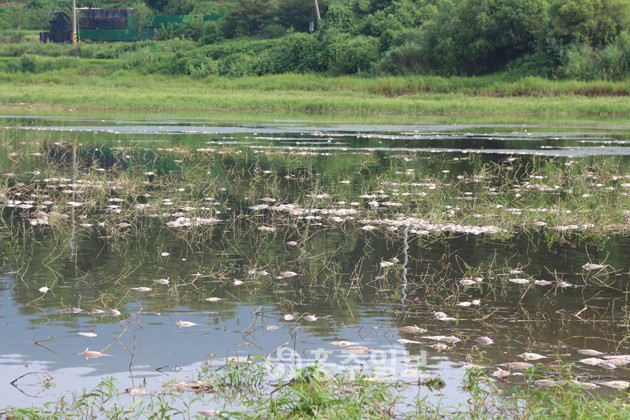 농어촌공사가 운영하는 수위계측정보 통합운영관리시스템에 따르면 장곡저수지의 수질은 화학적 산소 요구량(COD)이 14.3으로 기준치인 8을 크게 넘은 것으로 나타났다. 또한 총 인(T-P)은 0.22 부유물(SS) 40으로 각각 기준치인 0.1이하와 15이하를 2배 이상 초과하는 등 수질이 크게 악화된 것으로 나타났다. 이와 관련해 농어촌공사홍성지사는 지난 18일 약식 검사를 통해 용존산소부족으로 인한 폐사로 추정하고 있으나 정확한 원인을 조사하기 위해 장곡저수지 샘플을 채취해 전문기관에 검사를 의뢰했다. 또한 죽은 물고기 떼를 수거해 군과 협의해 음식물 쓰레기 등으로 전부 폐기처분했다. 홍성지사 관계자는 “가뭄이 지속돼 수질이 악화된 상황에서 대류현상으로 저수지의 위아래 물이 순환하면서 물고기들이 영향을 받아 떼로 죽은 것 같다”며 “용존산소부족이 주요 원인으로 추정하나 정확한 원인은 조사 중”이라고 밝혔다.
