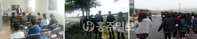 아이들은 매립시설관련 홍보영상 시청 후, △재활용선별시설 △매립시설 △소각시설 △음식물자원화시설 △침출수처리시설 순으로 폐기물처리시설 곳곳을 차례로 둘러보는 처리장 자체 견학프로그램에 참여했다. 이 자체 견학프로그램은 꾸준히 홍성군 내의 어린이집이나 중 고등학생들이 단체로 참여를 하고 있다. “백문이 불여일견이라 하잖아요. 아이들이 재활용품으로 다양한 창작 작품을 만드는 것만으로는 자원보호에 대한 의식성장은 한계가 있습니다. 보다 자세히 내가 분리 배출한 재활용품(쓰레기)가 어떻게 처리되는지 알 필요가 있습니다. 폐기물 처리 과정을 알면 자원의 소중함을 자연스럽게 배울 수 있다고 생각합니다.” 아이들을 인솔하고 함께 찾아온 홍성YMCA 유재준 간사의 말이다.