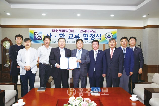 한서대(총장 함기선)와 태영세라믹(주)(대표 이대영)은 지난 25일 한서대 접견실에서 인적, 물적 자원과 정보의 공동이용을 위한 산학교류협정을 체결했다. 저작권자 © 홍주일보 무단전재 및 재배포 금지 홍주일보 다른기사 보기 페이스북 카카오톡 URL복사 기사공유하기