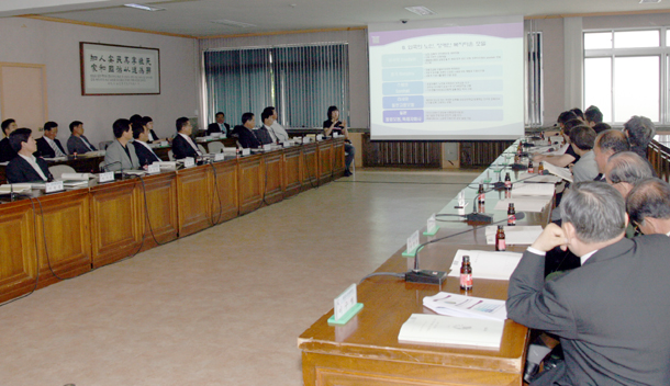 지난 5일 군청 회의실에서 이종건 홍성군수를 비롯한 관계자 50여명이 참석한 가운데 노인?장애인복지타운 조성 타당성 조사 용역 중간보고회가 개최됐다.