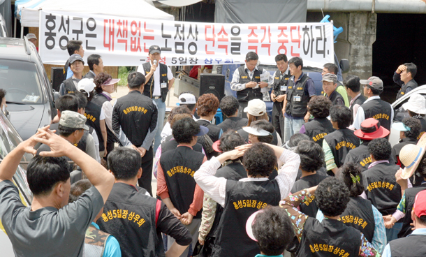 홍성5일장 주변 노점상 단속에 대한 유언비어가 난무하는 가운데 이에 항의하는 목소리도 거세지고 있다.