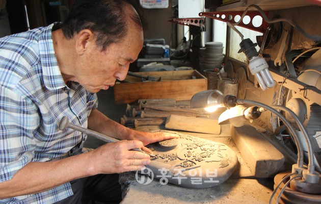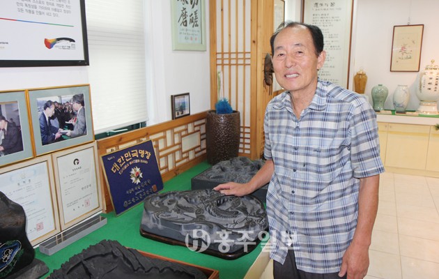 “할아버지께서는 옛날 다듬잇돌을 만들어 오일장에 내다 파시곤 하셨는데, 하루는 서당에서 벼루를 만들어달라고 요청을 했다고 합니다. 그때부터 벼루를 만들기 시작하셨죠. 아버지께선 그런 할아버지를 따라 벼루를 만드셨는데, 일제시대에는 청라면의 한 보통학교에서 벼루 선생님으로 계셨습니다. 당시 아버지의 가르침을 받아 학생들이 직접 만든 벼루들은 모두 일본으로 건너갔죠. 저도 할아버지와 아버지를 따라 5형제 중 유일하게 가업을 이어 벼루를 만들고 있습니다.”
