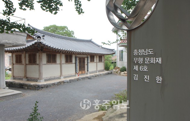 김진한 명장은 이처럼 가업을 이으면서 지난 1987년 12월 충청남도 지정 무형문화재 6호가 됐으며, 아버지인 김갑용 씨도 무형문화재 제도 이전부터 인간문화재로 인정받을 정도로 남포벼루의 대가로 널리 알려졌다. 김진한 명장은 어려서 아버지로부터 벼루 만드는 솜씨를 배우기 시작했고, 백운사 뒷산인 성주산을 올라 다니며 벼룻돌을 캤는데, 이 덕분에 어떤 돌이 벼룻돌로 가장 뛰어난지를 정확하게 가늠할 수 있게 됐다.