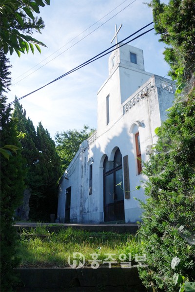 금마 가구점 도로를 지나서 화양삼거리 우측 마을로 들어섰습니다. ‘죽림리 공소’입니다. 아침 8시 반, 태양이 벌써 따갑게 내리 비칩니다. 아담한 계단 두어 개를 오르니 한쪽 가에 자그맣게 성모상이 모셔져 있군요. 자르지 않은 향나무가 건물을 가려 멀리서는 또렷이 보이지 않으나 80년대 세워진 여느 공소의 모습과 비슷하게 회칠된 모습입니다.