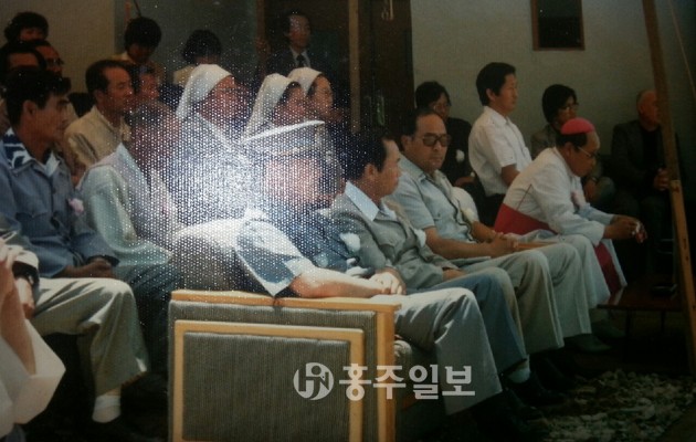 공소가 새로 건립되던 1980년 5월 18일. 황민성 대전교구 주교님과 이종린 홍성성당 주임 신부님과 관내 기관장님들, 그리고 신자들이 대거 참석했군요. 공소 초입으로 가방을 든 예쁜 여성들이 웃으며 들어오는 사진과 가마솥 뚜껑을 뒤집어 놓고 부침개를 부치는 사진들이 재밌습니다. 내부도 작았는데 그 곳에서 결혼식도 있었군요? 제 1회 성가대회에 부부가 다소곳이 노래 부르는 사진이 참 아름답습니다.