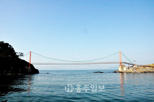 왼쪽 골목으로 잠시 올라가면 이모 민박이 있고 해물라면을 주문했다. 해물라면에는 전복과 홍합 그리고 게 까지 들어가 있어 시원함을 더해줬다. 다시 홍해랑앞으로 와서 섬의 왼쪽에 설치되어있는 나무데크를 따라서 출렁다리 쪽으로 향했다. 가는 동안 아름다운 바다와 마을의 모습이 내 마음을 사로잡았다. 멀리 보았던 출렁다리가 눈앞에 펼쳐지기 시작했다.