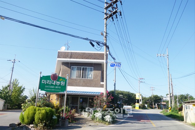 1시간 반쯤 걸었을까요? 역탑리와 오촌리 중간에 위치한 분촌4리 마을 자그만 동네 슈퍼에 들렸습니다. 버스 정류장이 있는 곳이어서 아직 남아있는 것일까요? 주인아주머니는 화분이 잔뜩 놓여 있는 가게 앞에 의자를 놓고 앉아 바람 쐬시고 중학생으로 보이는 안경 쓴 귀여운 아들이 물건을 꺼내주고 돈을 받습니다. 노오란 쥬스 한 병과 시원한 물 하나를 샀습니다.