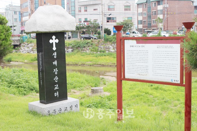 순례자들의 방문이 늘면서 홍성군은 천주교 신자 생매장터에 3000여만 원의 예산을 지원 ‘천주교 홍주순교성지’ 비석을 세웠다. 지역의 천주교 순교사 정립을 위한 첫 사업인 홍주순교성지비는 홍주성 북문 밖을 흐르는 월계천과 조양문 밖을 흐르는 합수머리 지점에 세워졌다. 이곳은 1868년 생매장으로 순교한 최법상(베드로) 등을 비롯해 박해시대 홍주성 안에서 옥사나 교수형으로 순교한 순교자들의 시신이 매장된 곳으로 추정되는 장소이다.