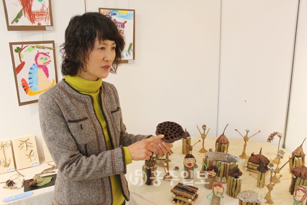 “지난해부터 아이들이 직접 자연에서 얻은 재료로 만든 작품들을 전시하는 활동을 이어오고 있습니다. 작년엔 야외에서 전시회를 했는데 날씨의 영향이 있어 올해는 실내 전시를 진행했습니다.”