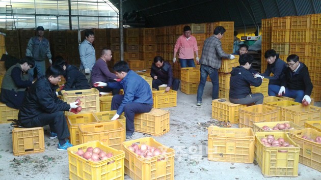 군청 건설교통과 직원 15명은 지난 17일 서리피해가 예상됨에 따라 수확이 늦어지는 가운데 인력확보에 어려움을 겪고 있는 갈산면 갈오리 소재의 과수농가를 찾아 농촌일손을 도왔다.사진> 저작권자 © 홍주일보 무단전재 및 재배포 금지 홍주일보 다른기사 보기 페이스북 카카오톡 URL복사 기사공유하기