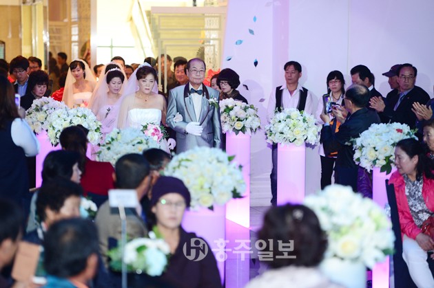 제37회 합동결혼식이 김석환 군수를 비롯한 내외귀빈과 가족 등 300여 명의 축하 속에 지난 6일 오페라웨딩하우스에서 열렸다.<사진> 홍성군여성단체협의회(회장 임이재)주관으로 열린 합동결혼식은 그동안 경제적 어려움 등으로 미처 결혼식을 올리지 못한 다문화가정(베트남, 중국, 네팔) 3가정과 저소득 가정 1가정 등 총 4쌍이 참여했으며 주례는 주호창 전 풀무고등학교 교감이 맡았다. 이 행사를 주관한 여성단체협의회 임이재 회장은 “부부의 연을 맺은 4쌍의 부부는 많은 분들의 축복 속에 가정을 이루었으니 서로 돕고 협력해 장점은 나누고 모자란 점은 채우며 사랑해간다면 아름다운 사회의 일원으로 복된 삶이 되리라 믿는다”고 부부를 위한 덕담을 남겼다.