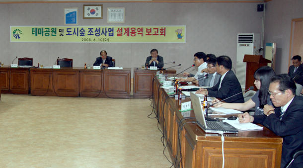 지난 10일 오후 2시 군청 회의실에서는 테마공원 조성 및 도시 숲 조성사업 설계용역보고회가 열렸다.