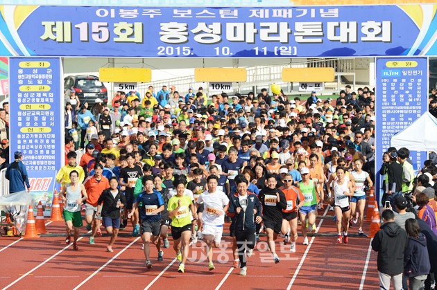 지난 11일 이봉주 보스턴 제패기념 제15회 홍성마라톤대회가 열렸다. <사진>