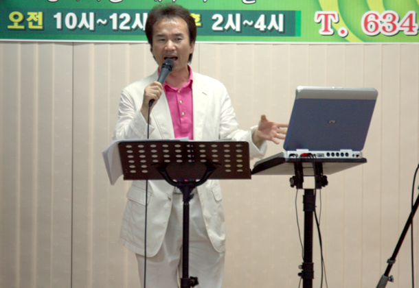 유준의 노래교실은 올해로 5년째를 맞고 있다. 앞에서 주부들을 이끌고 있는 사람은 KBS전국노래자랑 연말결선 최우수상 등의 수상경력이 있고 음반도 취입했던 유준씨. 그의 말 한마디에 의자에 다소곳이 앉은 아줌마들은 말 잘 듣는 학생이 되어 잘 따른다.