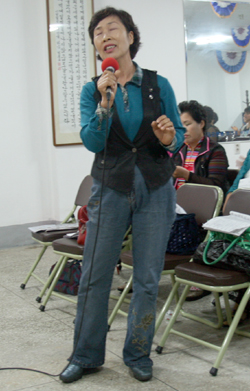 유준씨의 지목으로 앞으로 나가 멋들어지게 하이난 사랑을 부른 이연자씨(61세·오관리)는 “노래를 부르면 스트레스가 해소되는 건 물론이고 즐거운 마음이 생겨요. 그러면 하루가 즐거워지고 집에 가면 가족들에게도 더 잘하게 되죠”라고 노래교실의 효과에 대해 극찬한다.